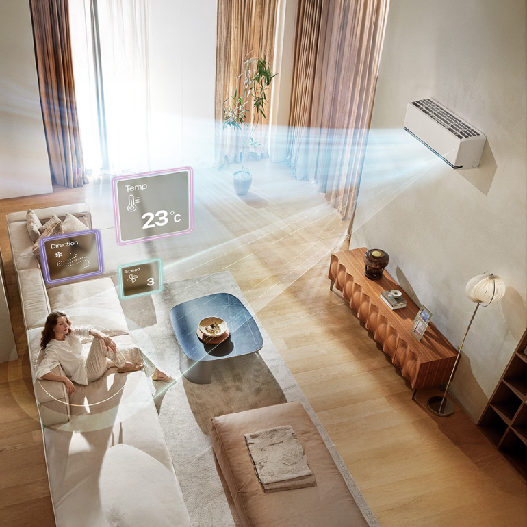 Zaprojektowany z myślą o podwyższonym standardzie życia w domu LG Dualcool AI Premium Soft Air zapewnia optymalizację warunków otoczenia dzięki sztucznej inteligencji dla jeszcze bardziej komfortowego środowiska życia.